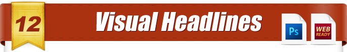 Visual headlines are a great way to REALLY make your headlines POP. With this module you'll get several different things... Main headlines, sub-headlines, and section headings. They all come in layered PSD format so you can easily modify the text in minutes. You can change teh fonts, change teh colors, move thigs around, etc.. Plus for the section headings, you also get web ready transparent PNG images with 10 different phrases each: