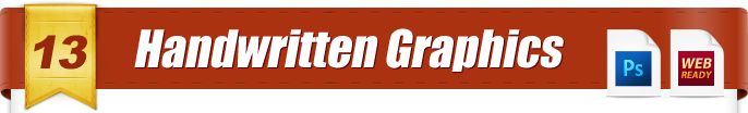 These are "hand drawn" graphics you can add to your designs to give them that personal touch. You'll get graphics like arrows, checkmarks and other signs, plus... highlights and underlines. All these graphics come as both web ready PNGs and PSD files.