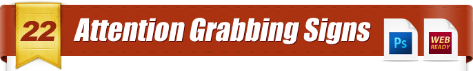 These signs are meant to be used to instantly grab the attention of a website visitor. They come in web ready PNG format and also layered PSD format (so you can make the text say what ever you want).