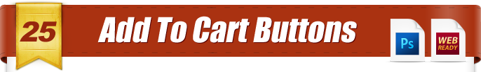 A collection of clean and professional Add To Cart buttons. They come in 2 formats: 1. Animated GIF format with a slight shine animation 2. Transparent PNG (which means they can be used on any color background). They also come in 5 different colors. You also get PSD source files so you can make the text say what ever you want, and make other changes.