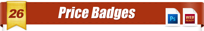 This is a set of 6 different premium quality badges for different things like "Limited Time Price", "Money Back Guarantee", "Discount", and "Top Seller". What makes these badges special is the amount of detail on each design - seriously, just take a look at the samples :) You get these in both web ready PNG format, and layered PSD format. Also, the cool thing about the web ready PNGs is that I saved them in a whole bunch of variations like...